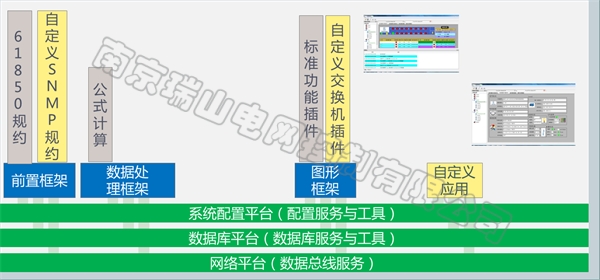 以“智能变电站虚拟终端项目”为例,选配前置框架及61850规约、数据处理框架及公式计算部件、图形框架及标准插件,自行完成SNMP规约、自行完成交换机图元的事件响应、自主开发一个图形人机界面,其中嵌入了PowerGraphics图形,即可完成一个系统的开发。