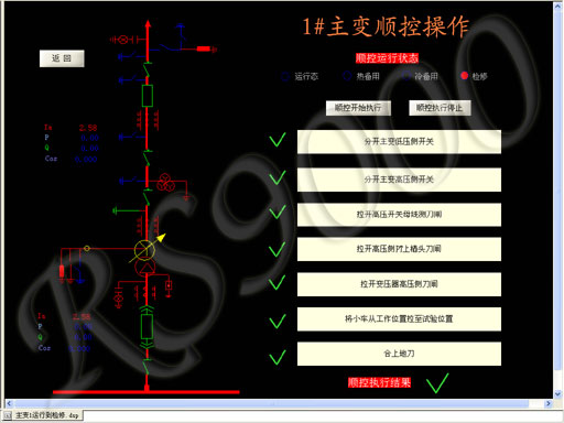 执行操作任务是电力调度人员和变电站运行人员经常要完成的工作。操作任务通常是由几个到十几个控制动作组成的,不仅每一个动作不容许出错,而且动作的先后顺序也必须严格遵守。将这一系列控制动作作为一个顺控流程由RS9000监控系统自动完成,就大大减轻了工作人员的负担,也可以避免人为操作过程中的失误。从而我们的运行人员所要做的只是从当地或远方下发一个执行任务的命令,然后坐在监控室的座位上观察或紧急干预每一步控制动作自动执行过程和结果。