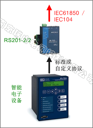 RS201规约转换器使用范围及方式很多,其典型应用结构如下,OPC方式与IEC61850方式类似,不重复举例说明了: