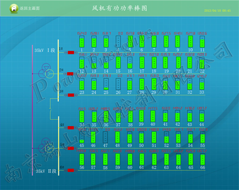 2、实时显示各机组的发电功率、累计发电量、发电小时数,风轮及电机的转速和风速、风向等;